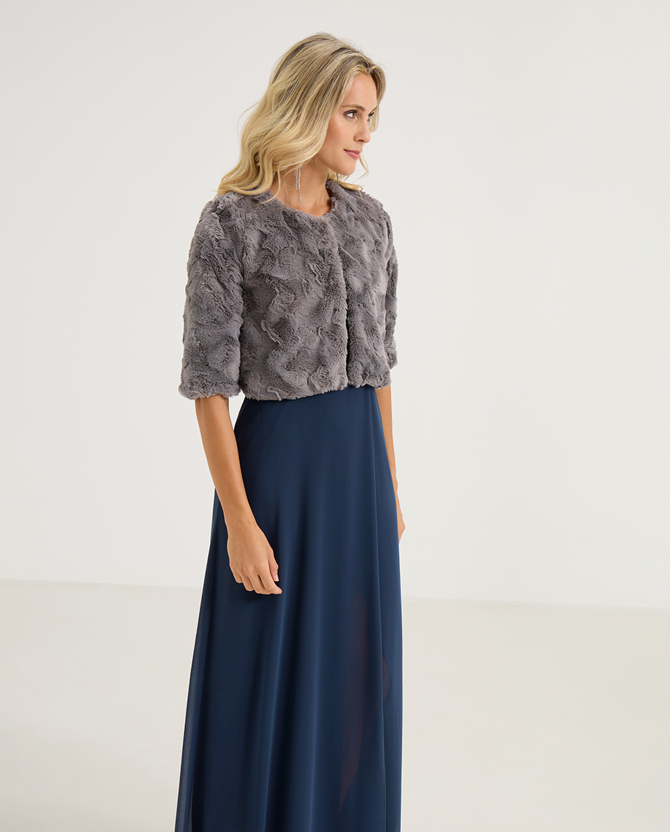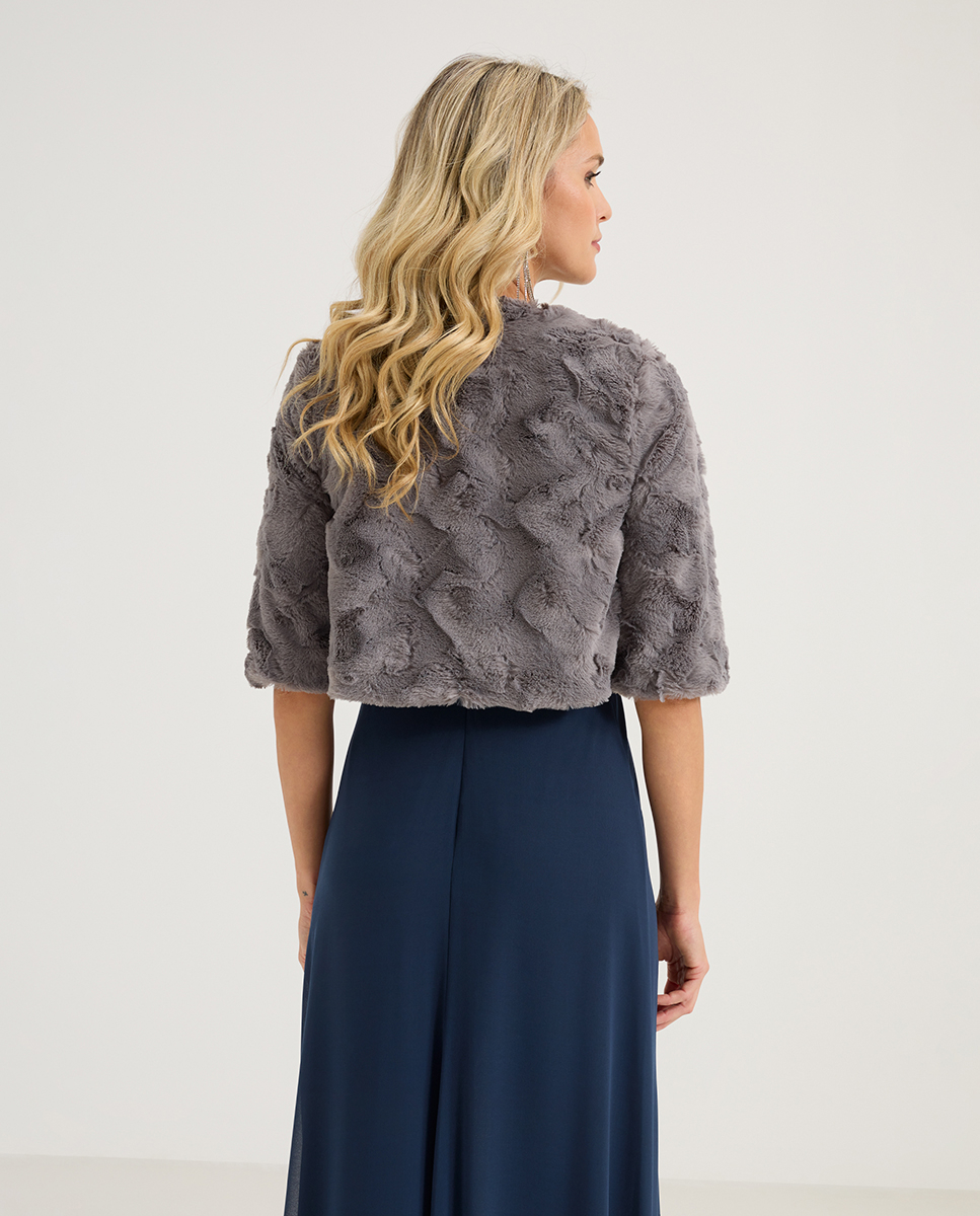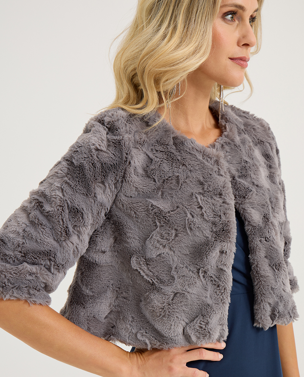 Chaqueta corta faux fur. No se incluyen complementos.