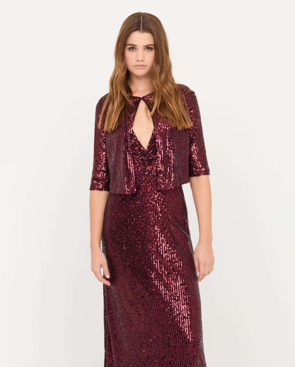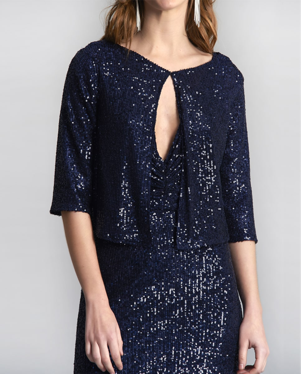 This party jacket is a super versatile garment since it is reversible and you can use it as a jacket or as a top. It is a garment that gives the perfect touch to your look. Ideal to combine with our collection of sequin dresses or with any party dress!