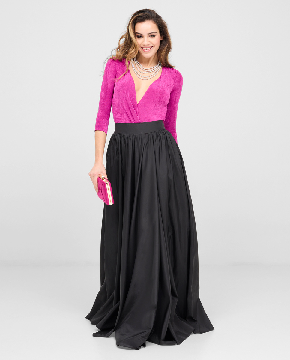 Este body es ideal con cualquier falda o pantalón de nuestra colección. La modelo lleva una 36 y mide 176cm. Sus medidas son pecho 90 cm cintura 64 cm y cadera 93 cm. Consulta cuál es tu talla en nuestra guía de tallas que encontrarás en esta misma página